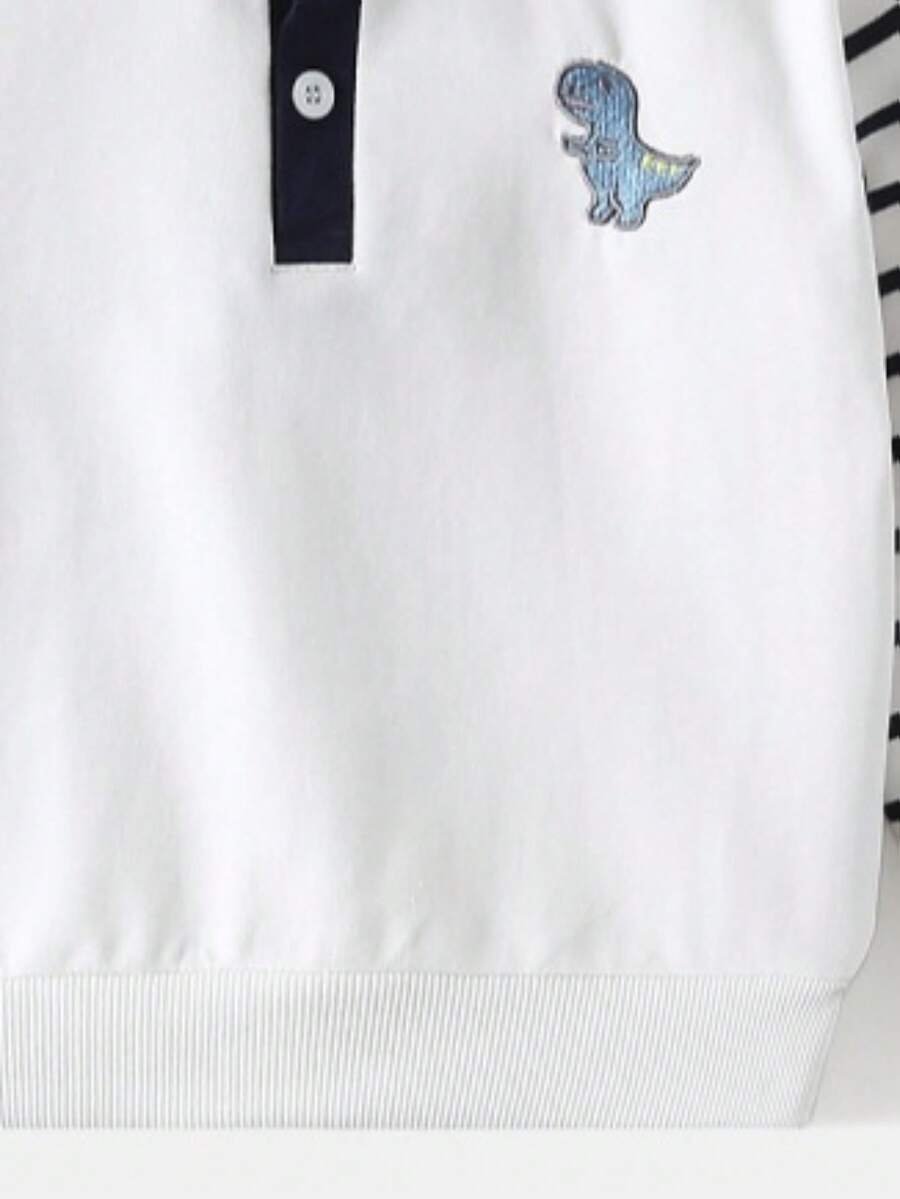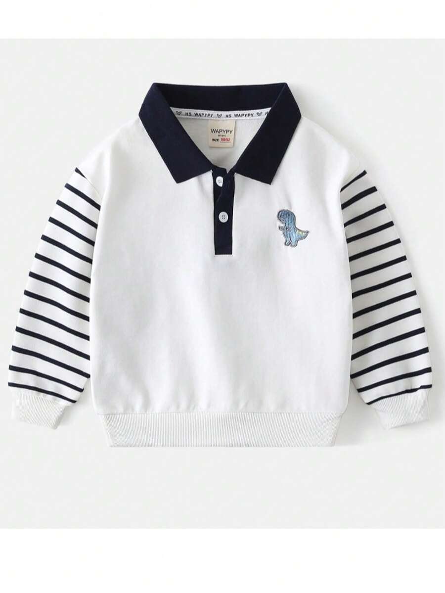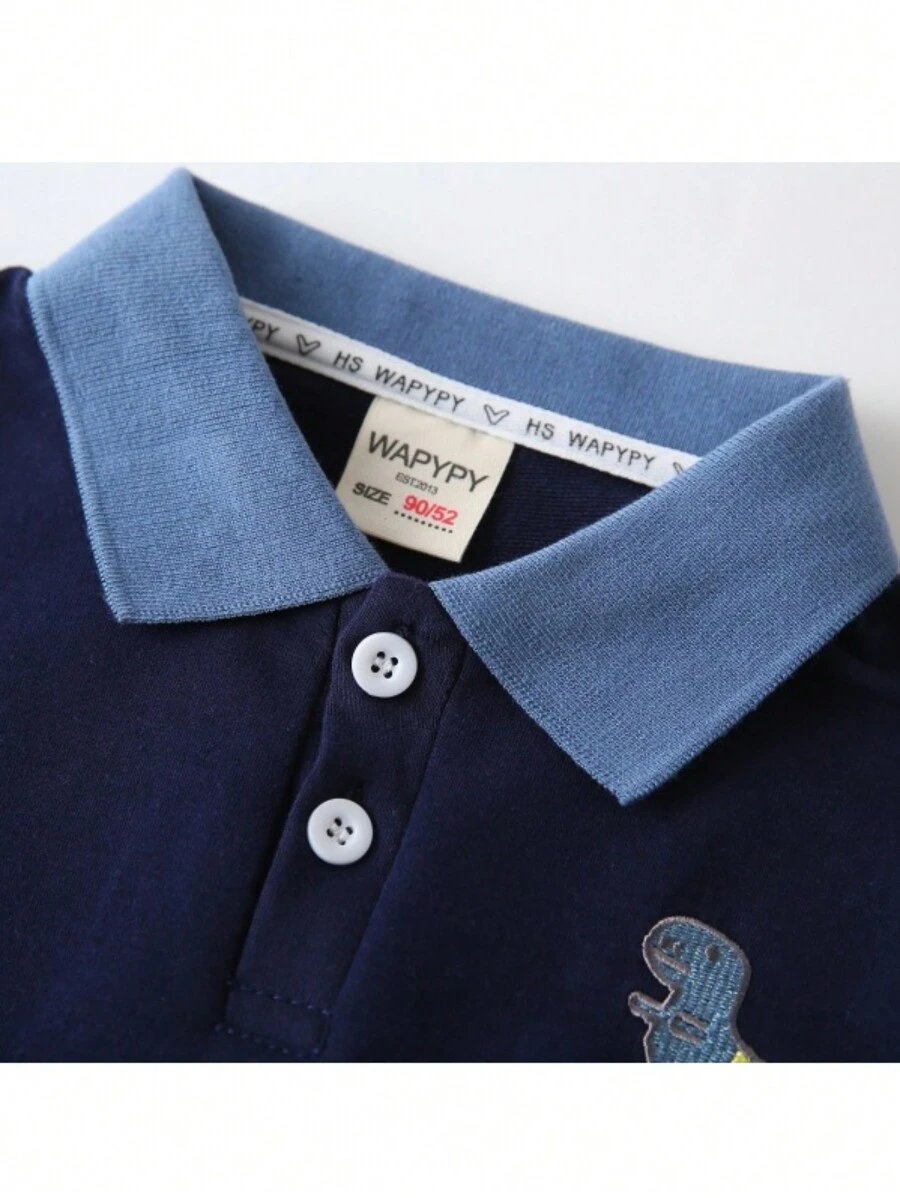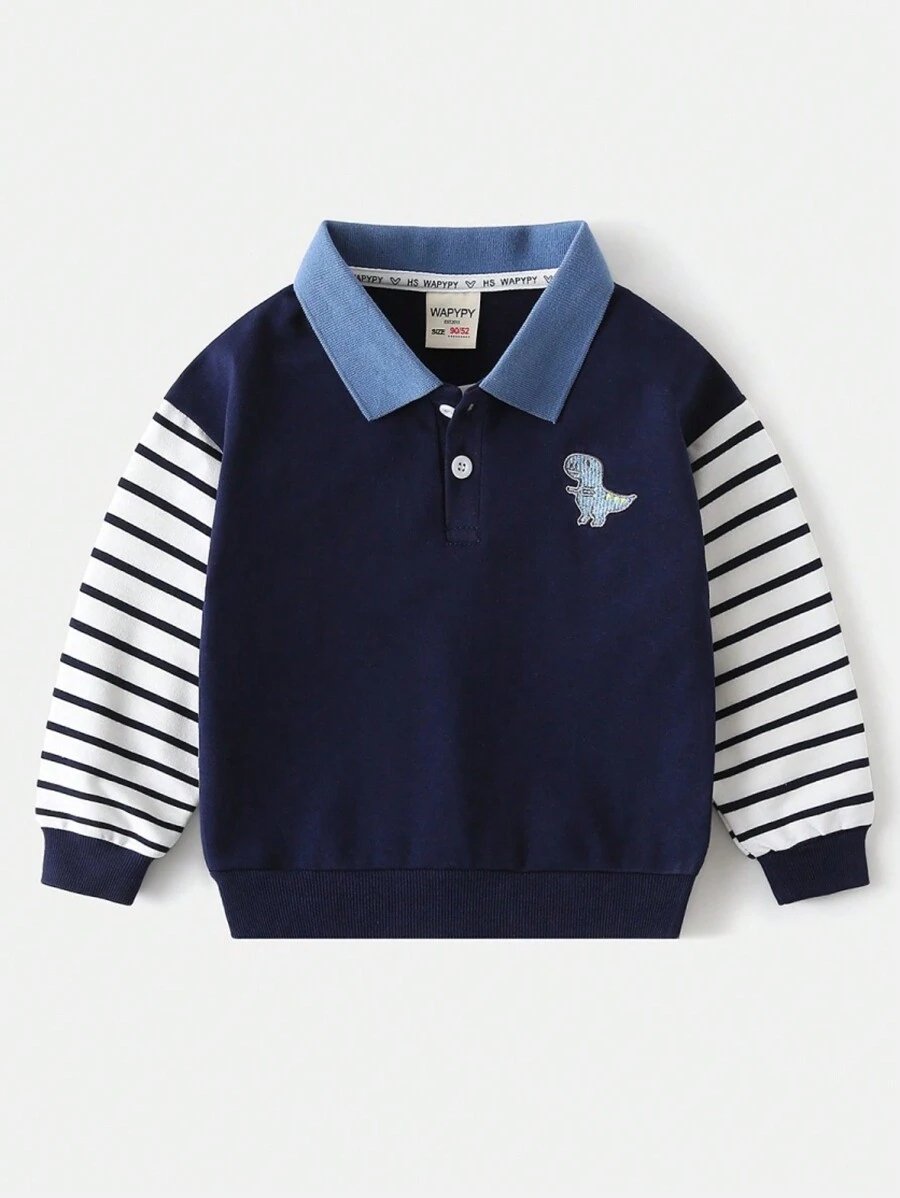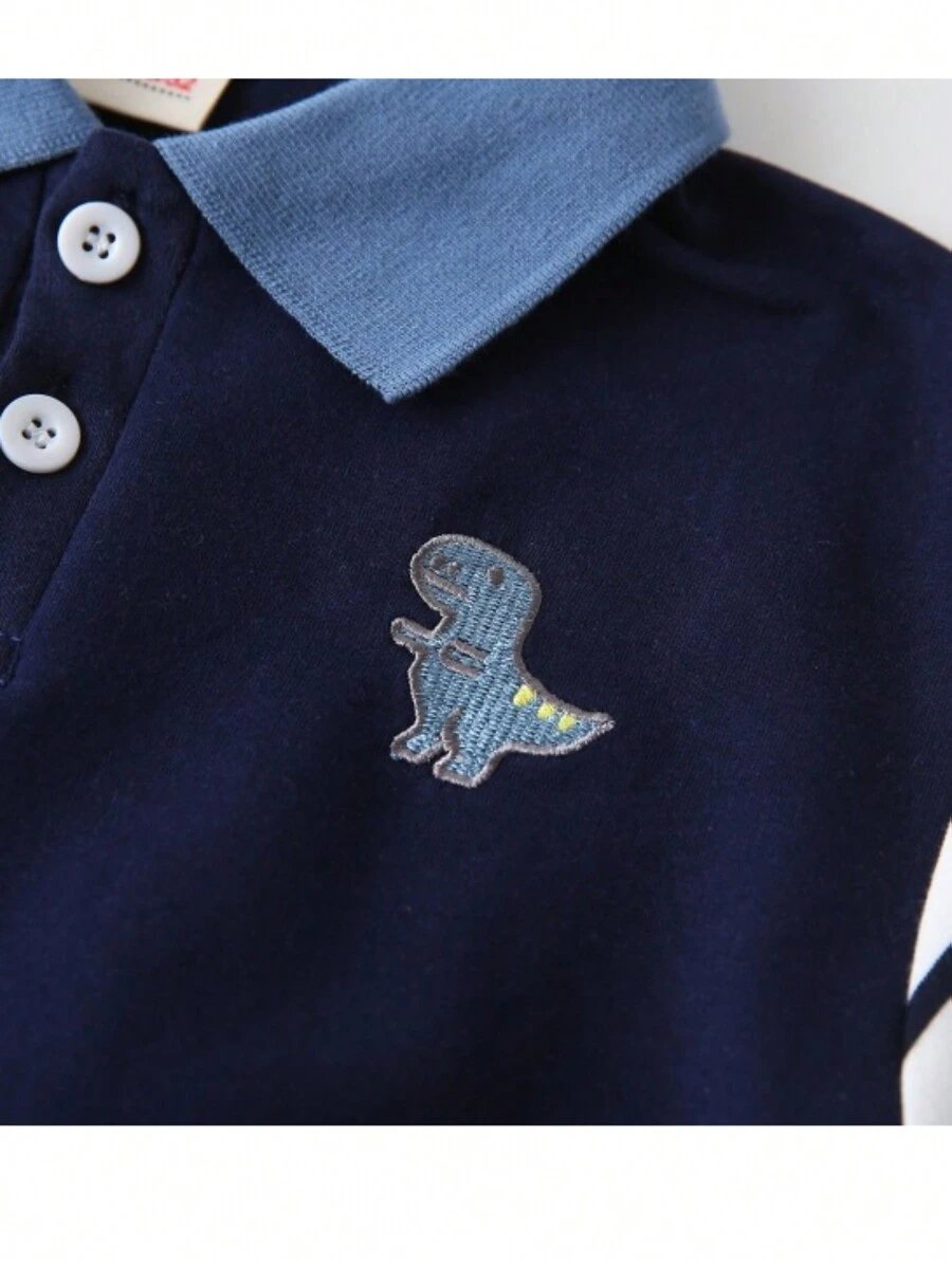 - اسم المنتج: بلوزة بياقة رقعية مطبوعة بطبعة ديناصور أكمام طويلة للأولاد