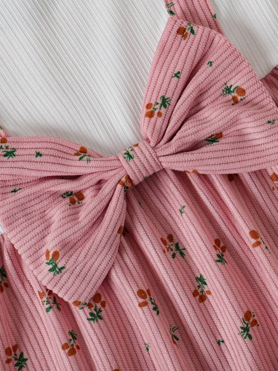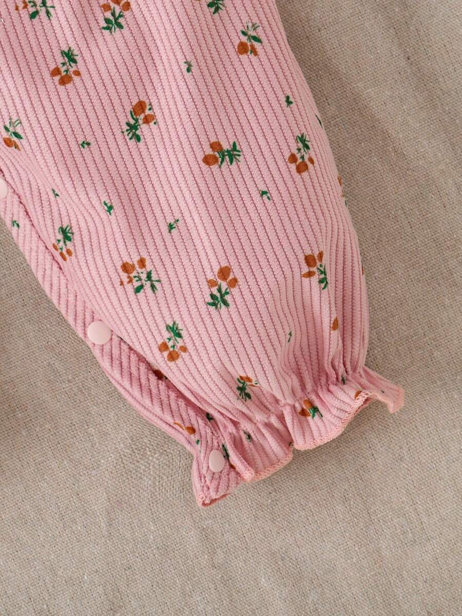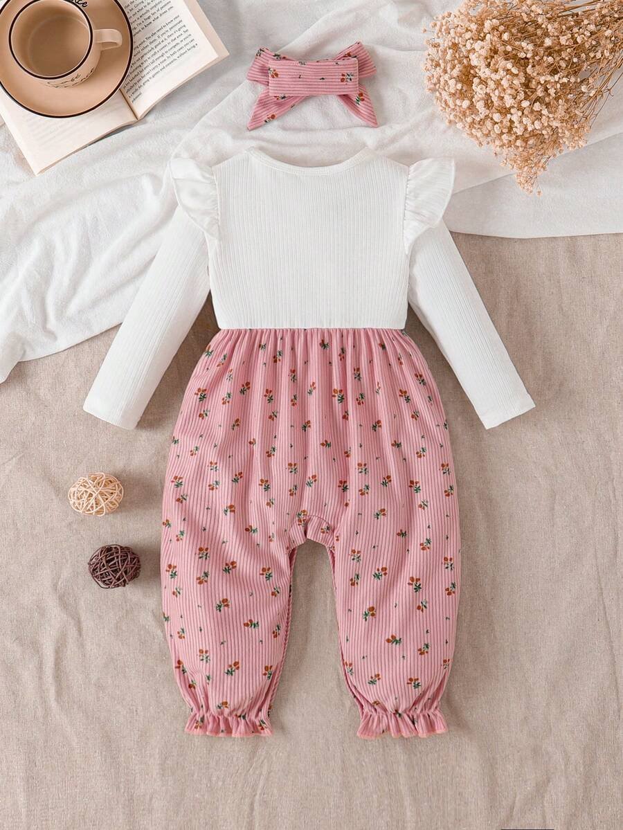 طقم سالوبت وردية بطبعة زهور مستديرة الأكمام، وجوارب بفيونكة، وعصابة للرأس