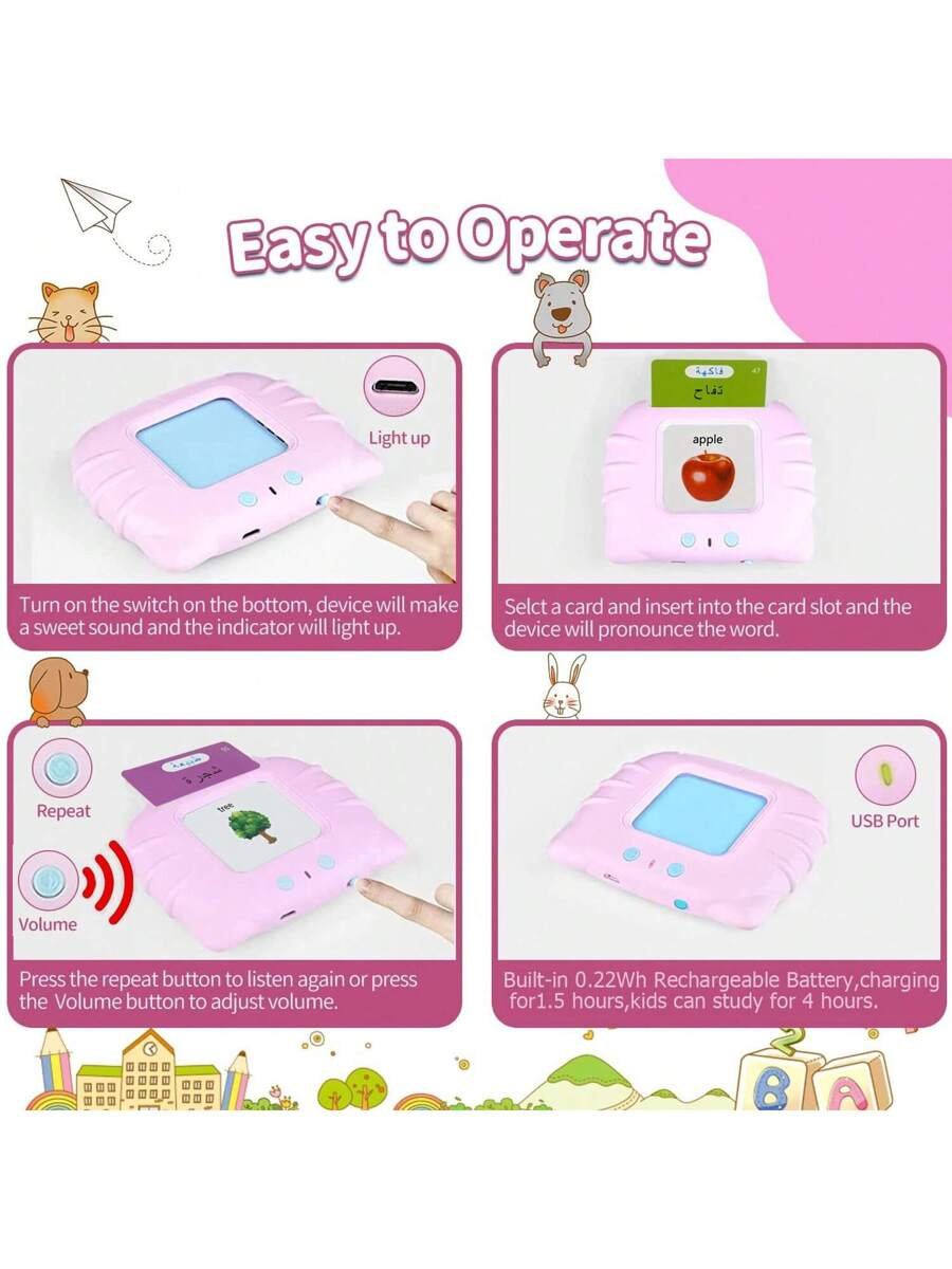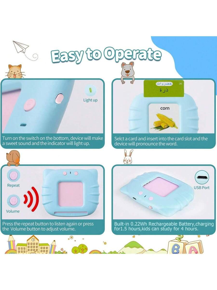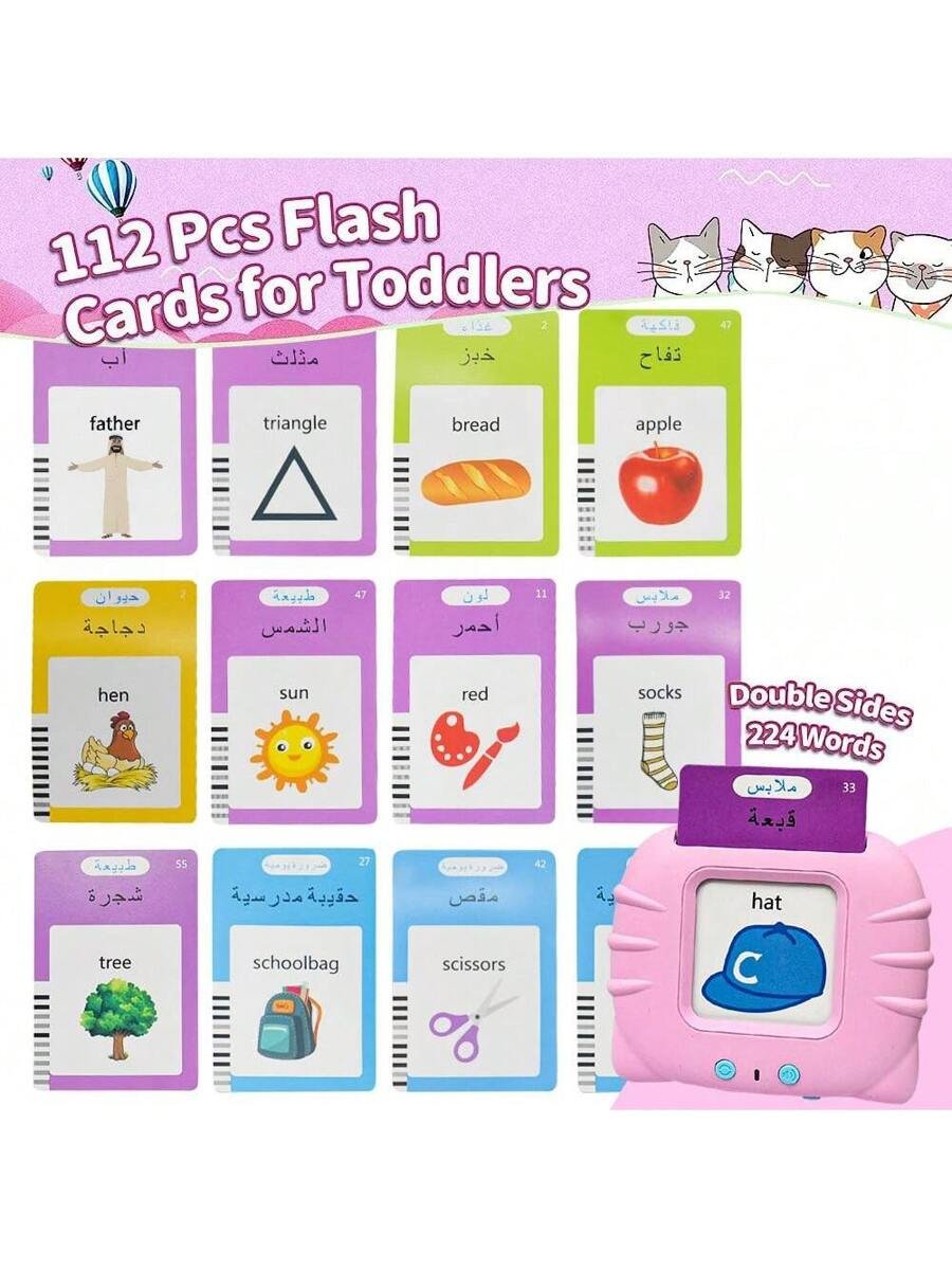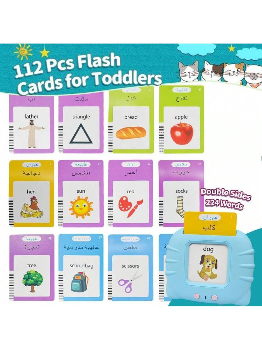 مجموعة بطاقات فلاش اللغة العربية والإنجليزية- لعبة تعليمية مسجلة شاملة ل- 224 كلمة للأطفال لصعوبة التحدث