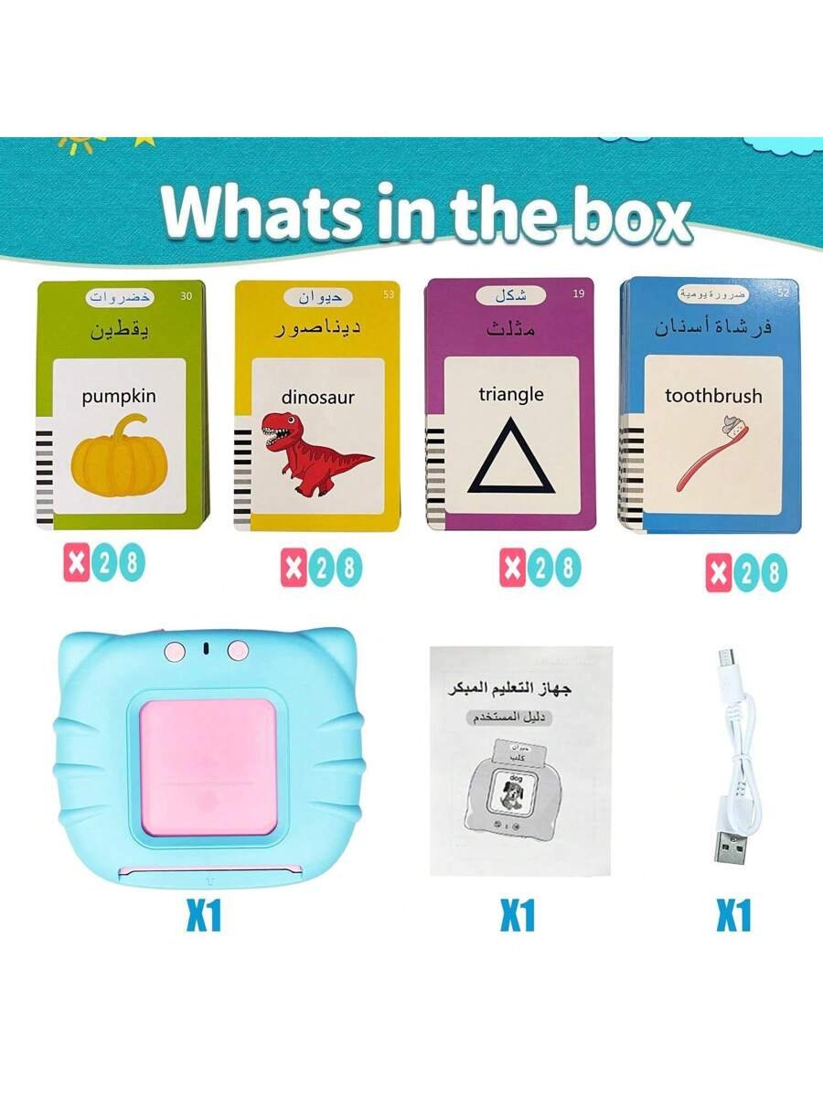 - اسم المنتج: طقم بطاقات وميض اللغة عربية وإنجليزية للتعليم المبكر
