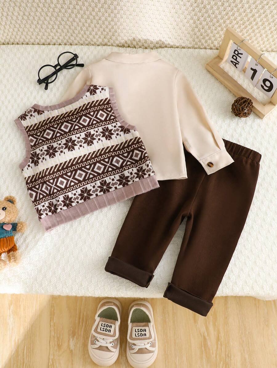 تقدم لكم مجموعة ملابس مميزة تحتوي على طقم من 3 قطع مصمم خصيصًا لإضافة لمسة من الأناقة والراحة لطفلكم. مع بنطلون محبوك وقميص بأكمام طويلة مزين بطبعة دب جريئة، هذا الطقم هو الخيار المثالي للأيام المشرقة والمغامرات الصغرى. اجعلوا طفلكم يتألق بأسلوب عصري ومريح!