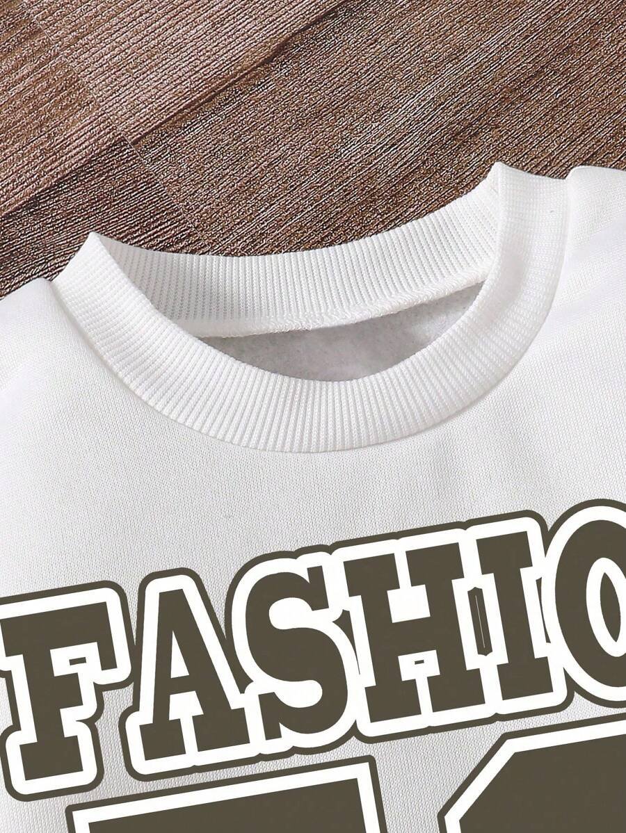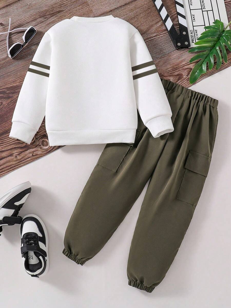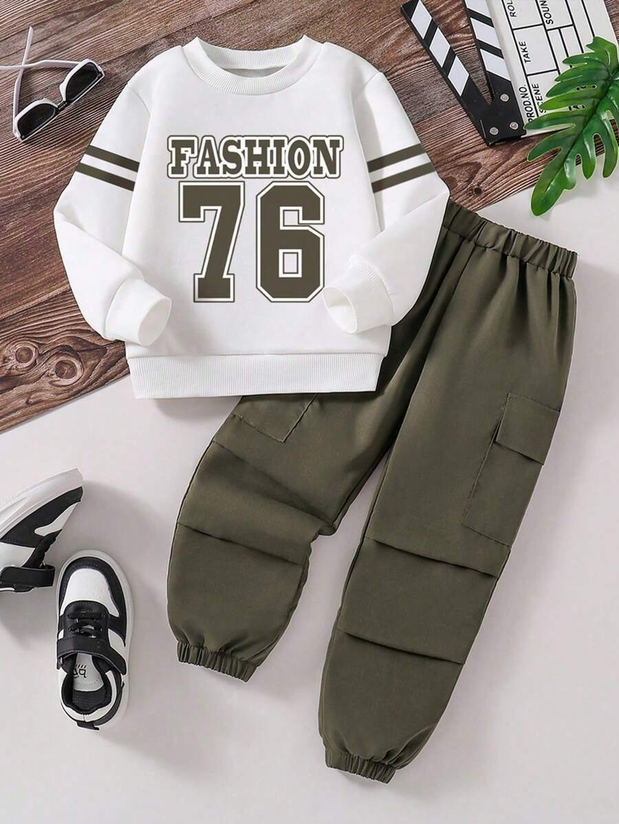 - اسم المنتج: طقم من سويت شيرت بأكمام طويلة بطباعة جرافيك وبنطلون بجيب