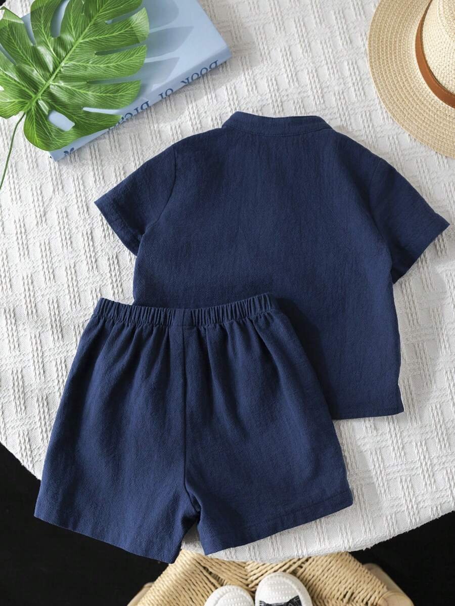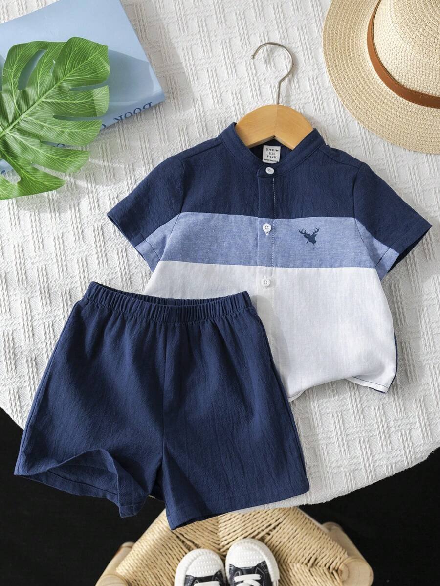 مجموعة قميص بولو بياقة وقصيرة الأكمام ذات لونين وشورت