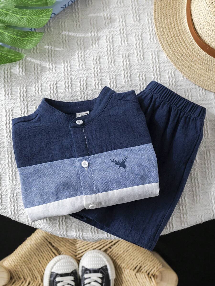 - اسم المنتج: مجموعة قميص بولو بياقة وقصيرة الأكمام ذات لونين وشورت