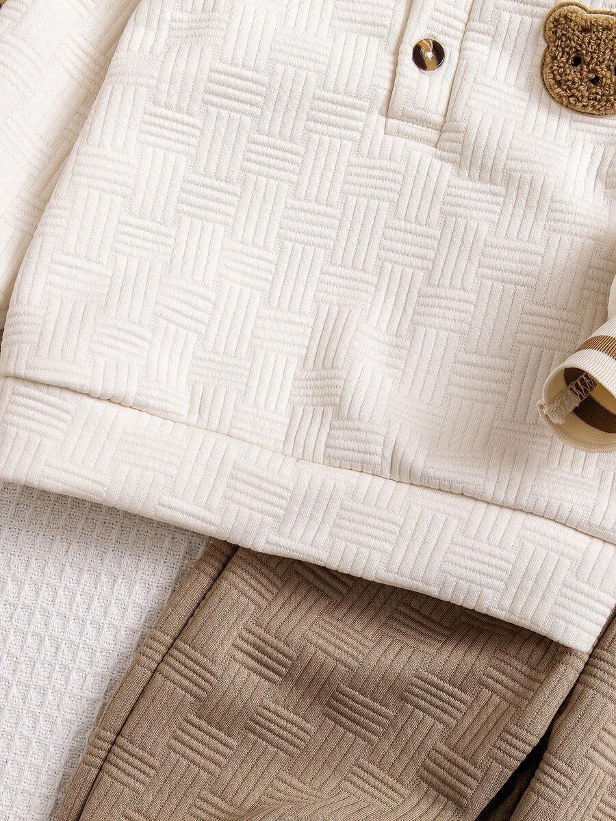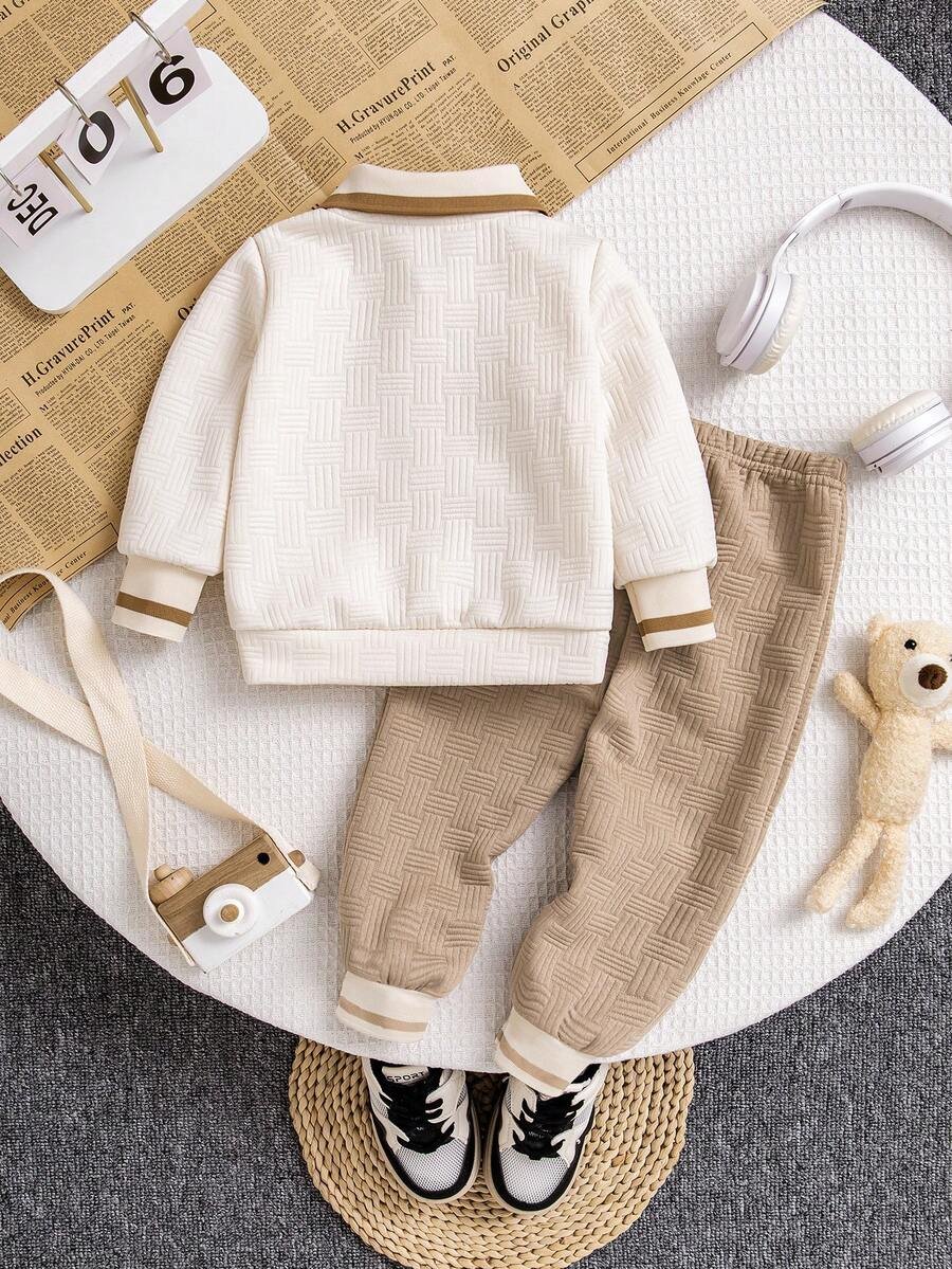 اكتشفوا أناقة الشباب اليومية مع طقمنا المتميز المكون من قطعتين، والذي يجمع بين الراحة والأناقة في تصميم رائع يناسب جميع الأوقات. تم تصميم بلوزة بياقة دب مزخرفة بنسيج الجاكار مع بنطلون يتناسب بشكل مثالي، مما يجعل هذا الطقم الخيار الأمثل لأطفالكم ليبدو أنيقاً ومريحاً في ذات الوقت.