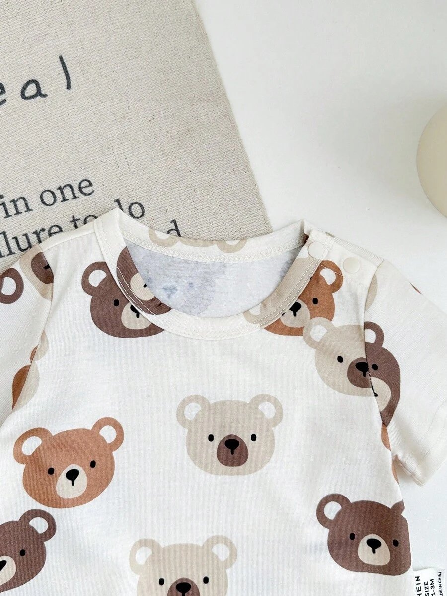 - اسم المنتج: مجموعة 6 قطع ( 3 أطقم ) بلوزة قصيرة الأكمام وشورت بطباعة كرتون دب وخطوط