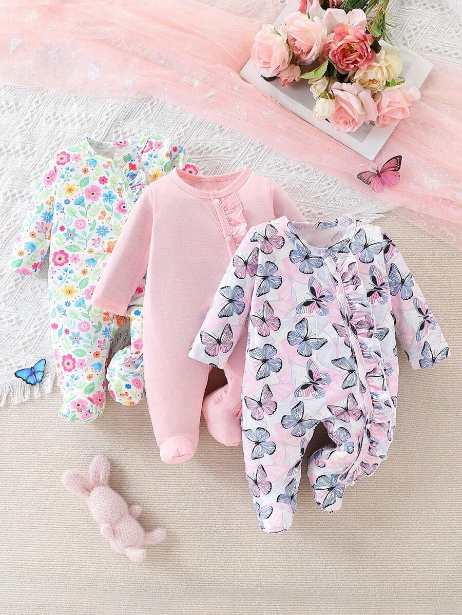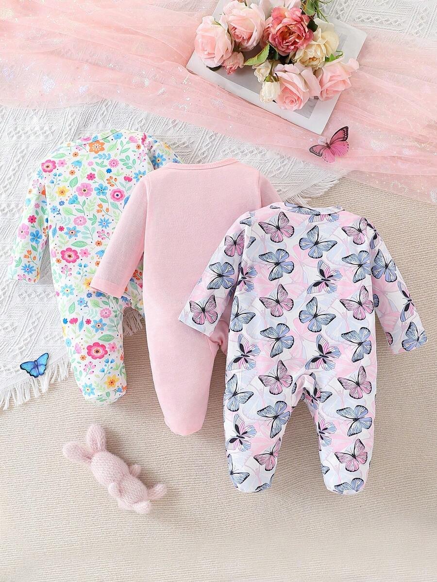3 أطقم للرضع مطبوعة برسومات زهور وفراشات