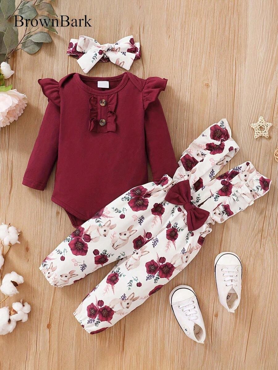 - اسم المنتج: مجموعة من 3 قطع (بلوزة طويلة الأكمام بياقة دائرية_ سالوبت زهرية _وطوق للرأس)