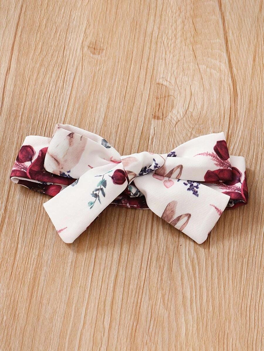 مجموعة من 3 قطع (بلوزة طويلة الأكمام بياقة دائرية_ سالوبت زهرية _وطوق للرأس)