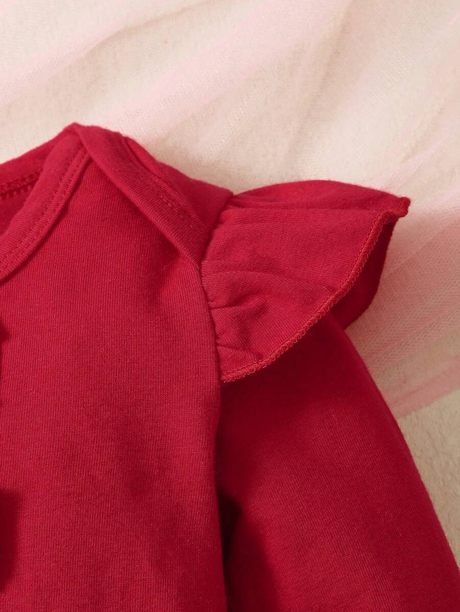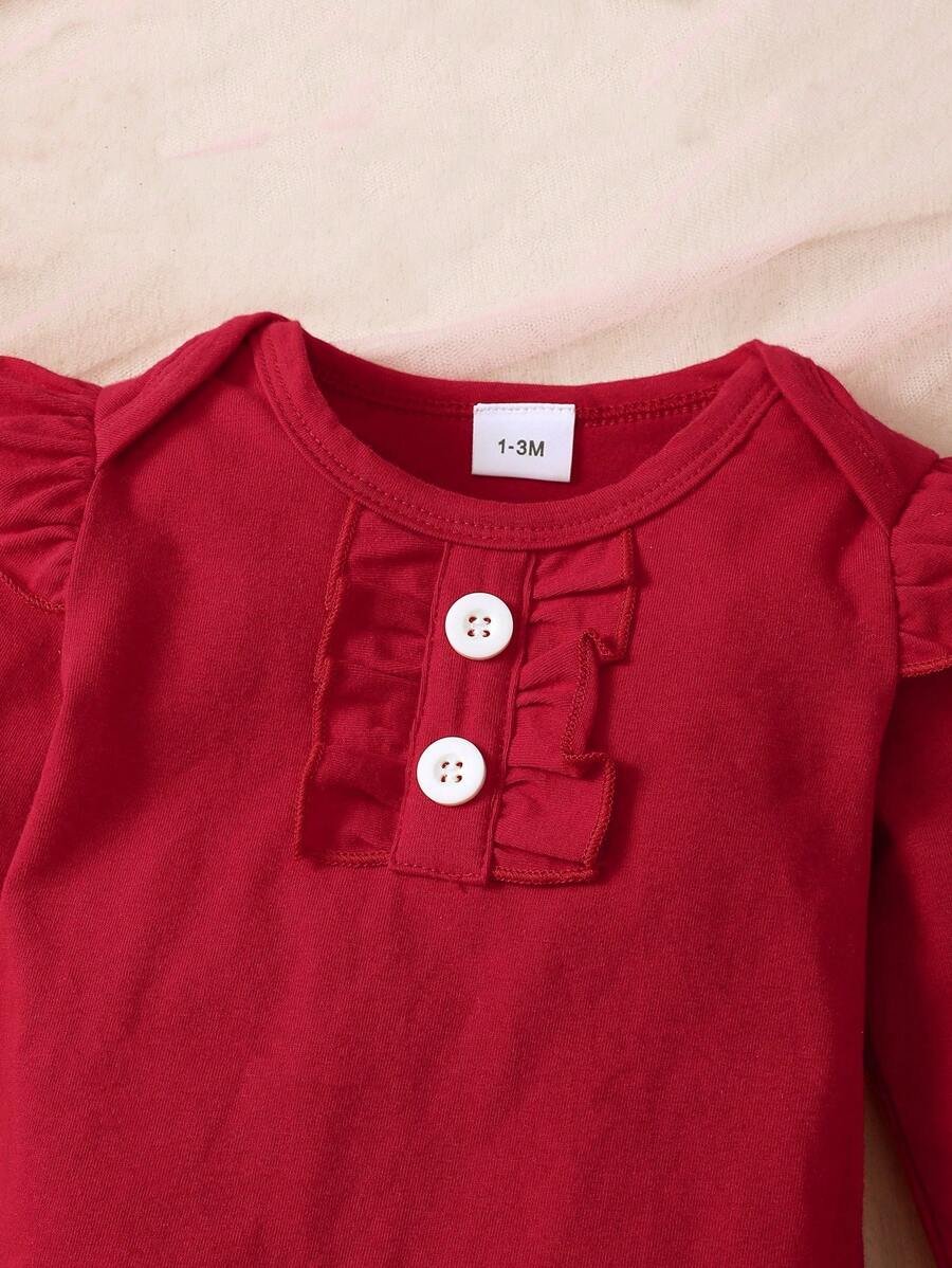 طقم بنطلون جينز وبلوزة طويلة الأكمام مزينة بفيونكة