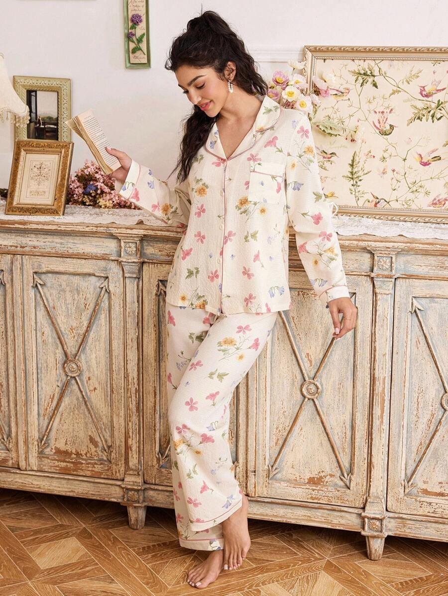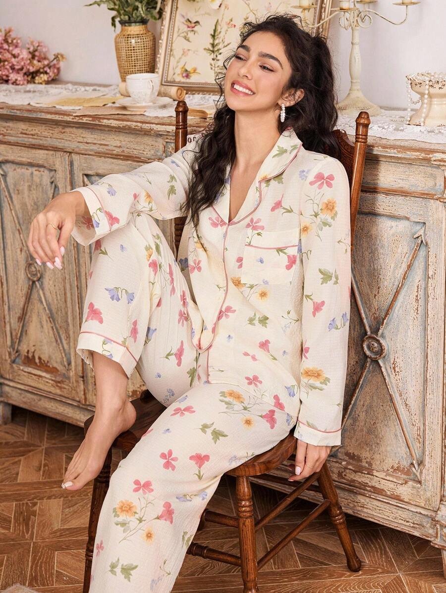 استمتعي بأجواء مريحة وأنيقة مع بيجامة الزهور الوردية، واجعلي أوقات النوم لديكِ أكثر تميزًا!