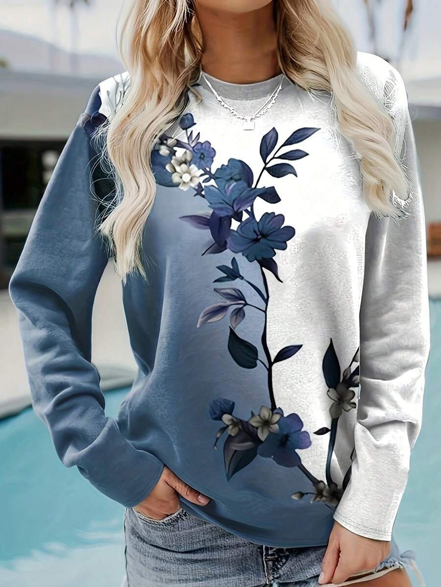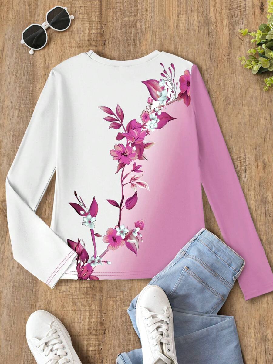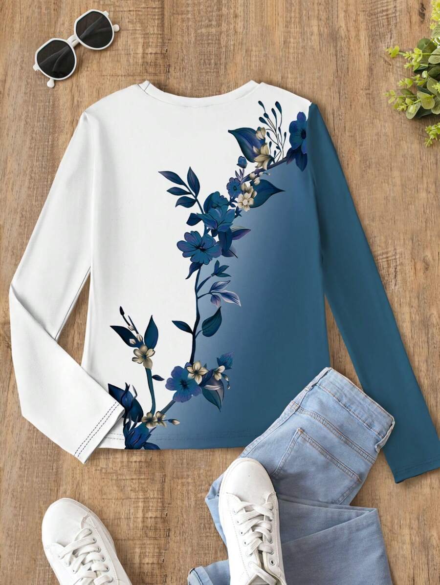تي شيرت نسائي بأكمام طويلة بتصميم زهرة كبيرة