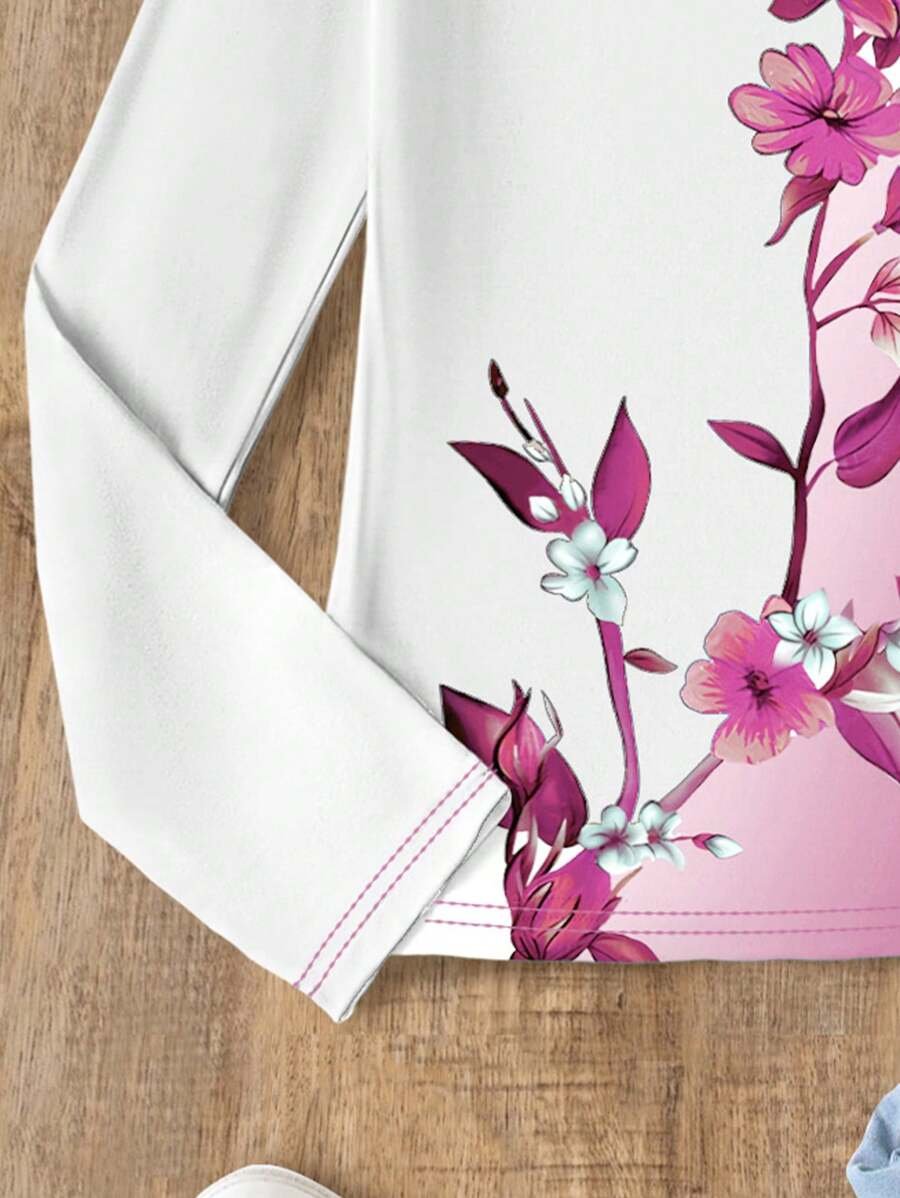 قميص نسائي كاجوال بزهور وردية بأكمام طويلة