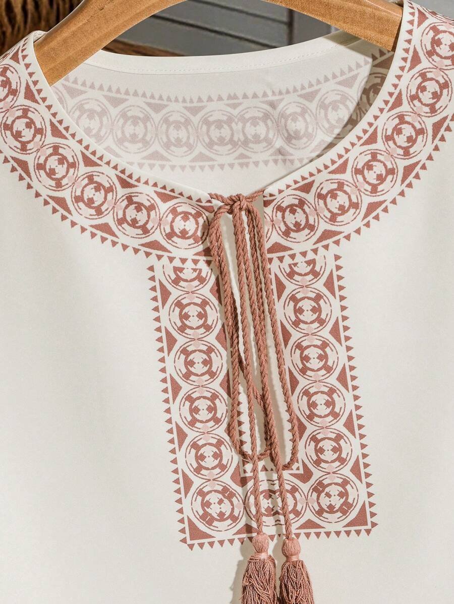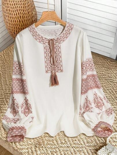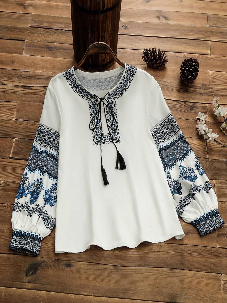 استعدي للاحتفال بأناقتك هذا الموسم مع بلوزة نسائية بتصميم بوهو المثالي للمناسبات الاحتفالية مثل عيد الحب ومهرجانات الربيع. تجمع هذه البلوزة بين الأناقة والراحة، مما يجعلها الاختيار الأمثل لإطلالة مميزة.