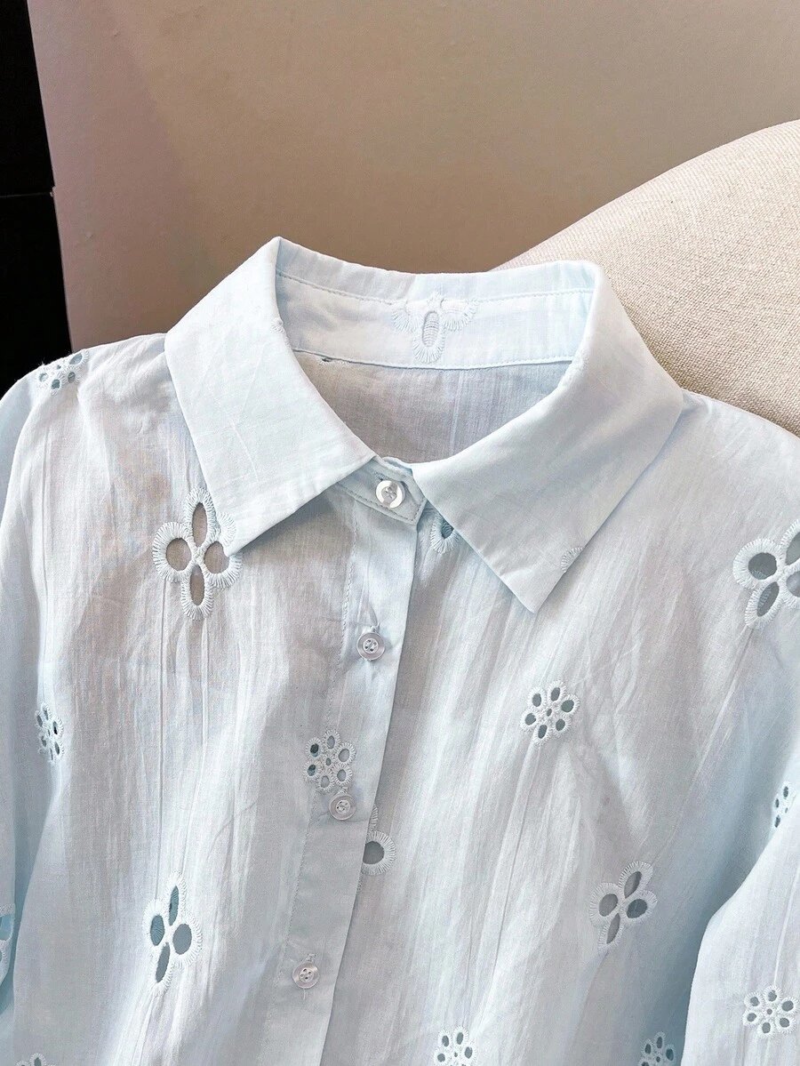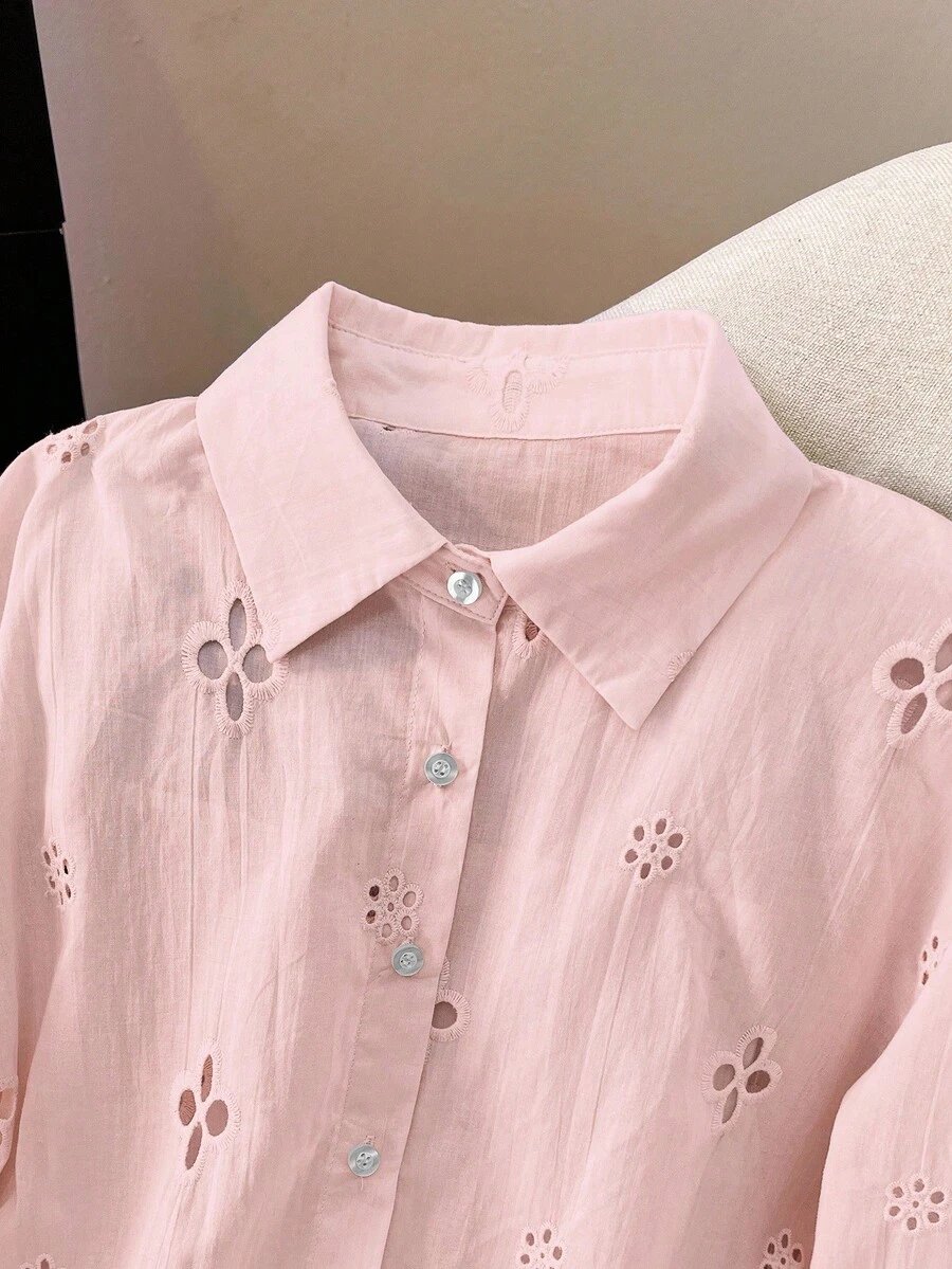 اسم المنتج: قميص نسائي سادة بتصميم مفرغ