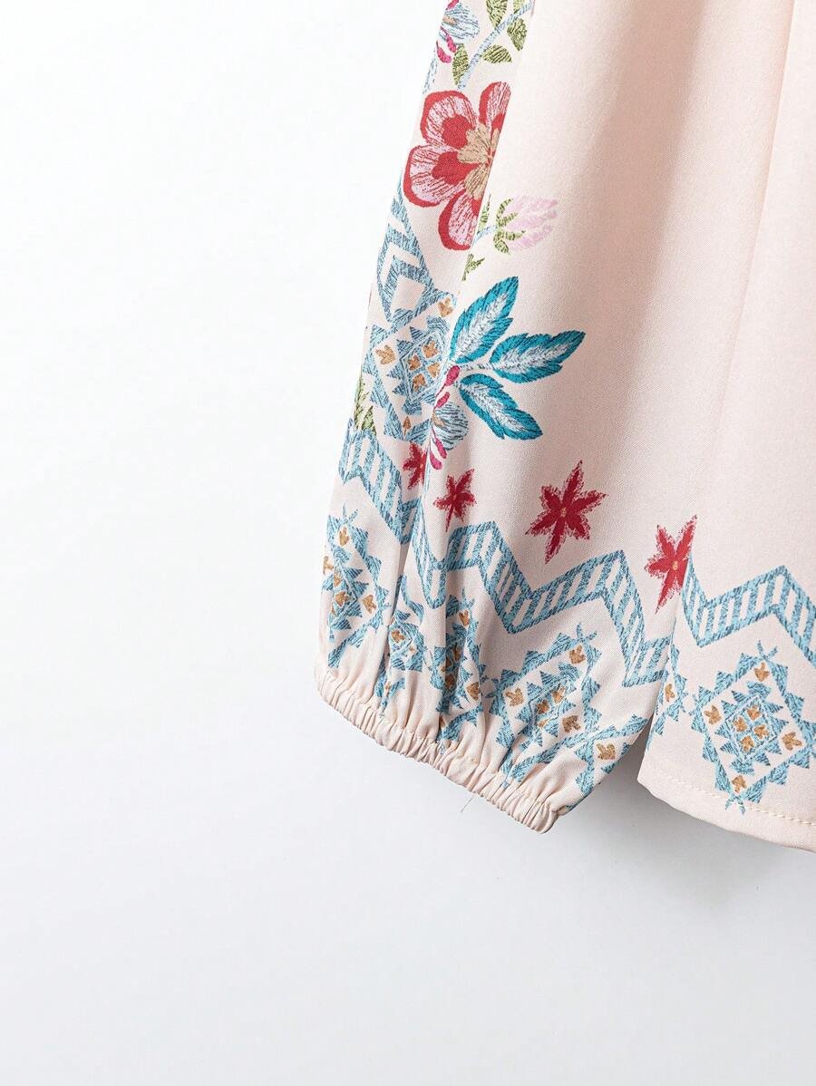 قميص نسائي بأزرار بتصميم زهور
