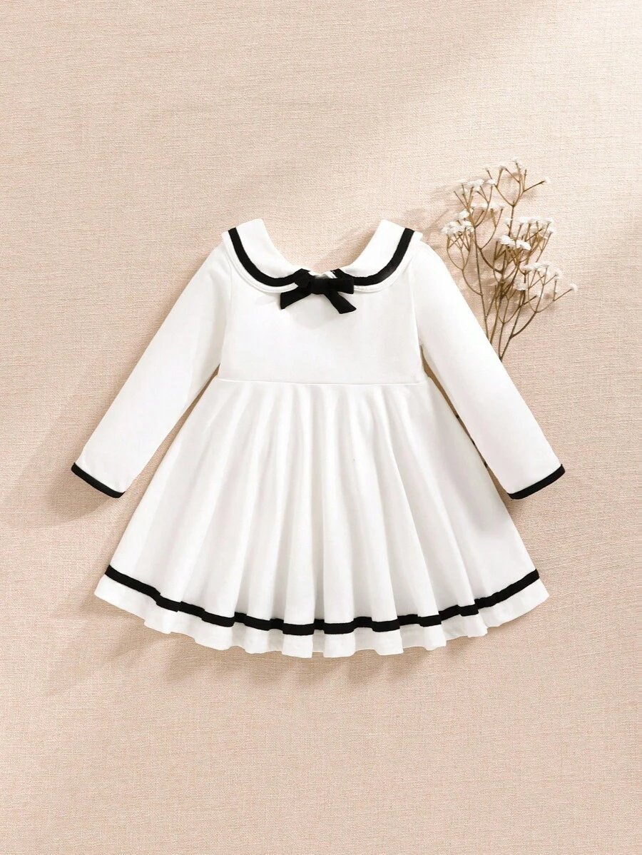 فستان بناتي بتصميم شريطي مزين بفيونكة