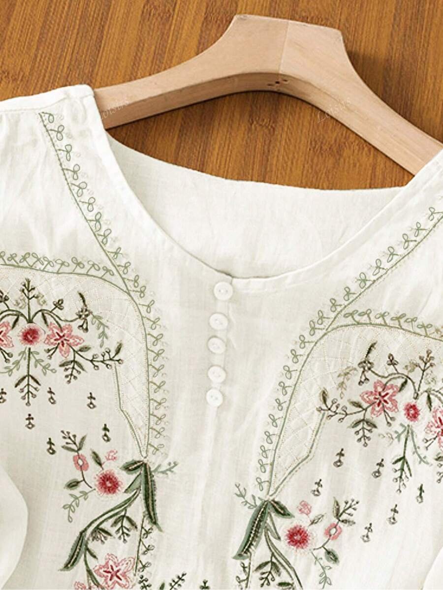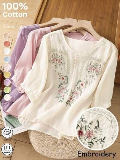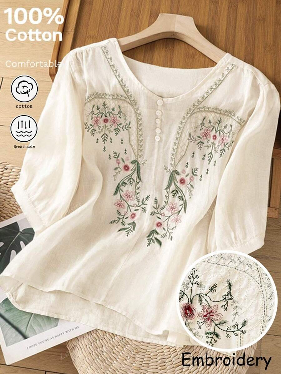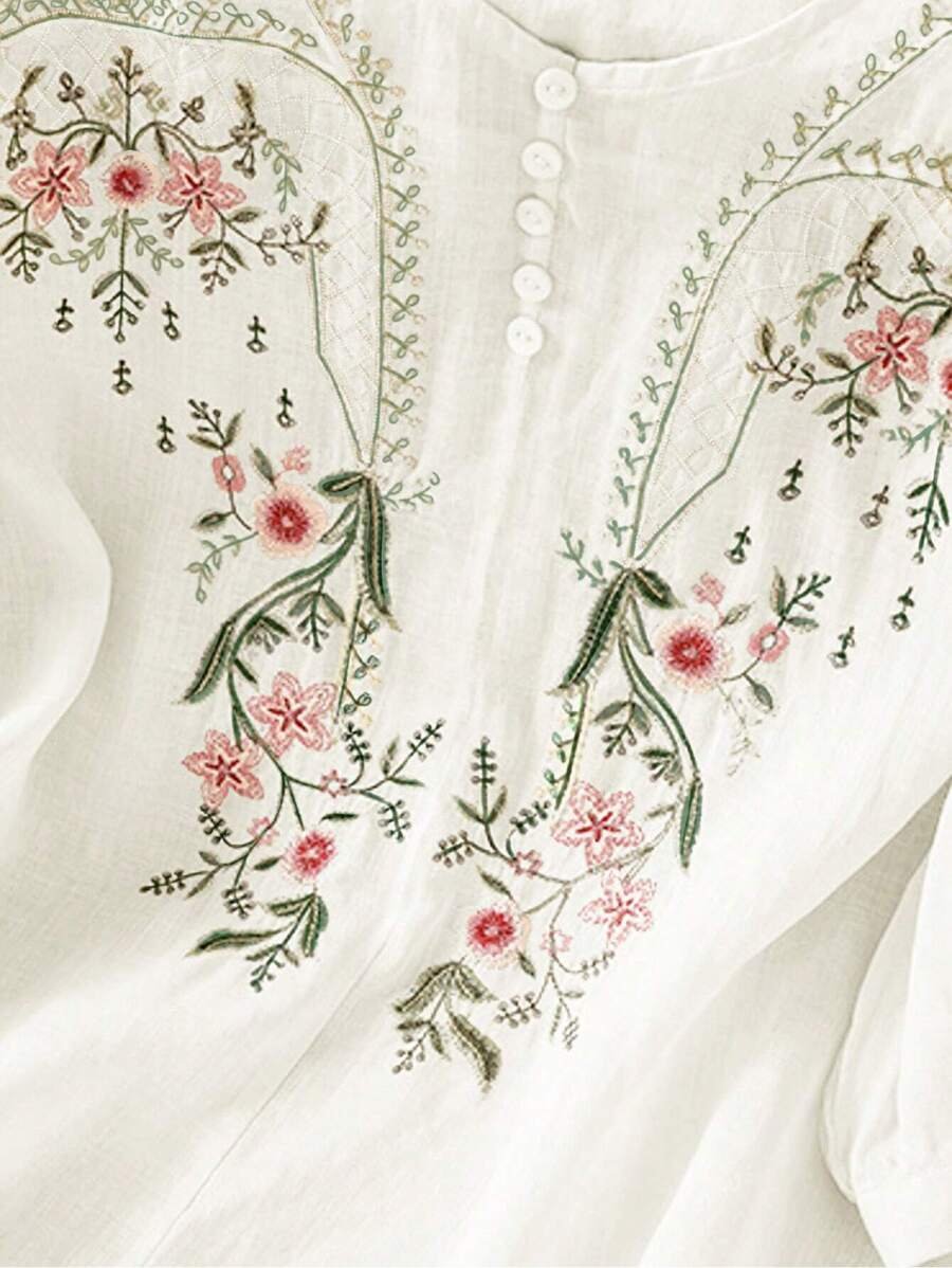 بلوزة نسائية مطرزة باللون الاوف وايت